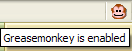 2f: Als het installeren goed is gegaan, zie je in je Firefox-statusbar (onderaan) een icoontje waar je op kunt klikken om Greasemonkey in- of uit te schakelen (afbeelding).